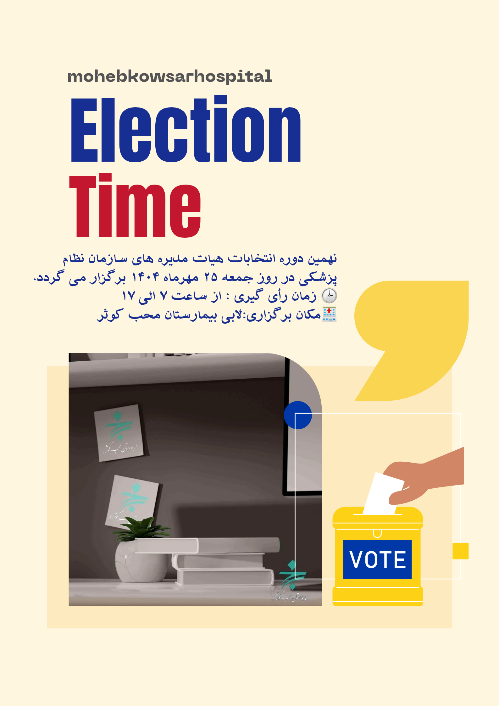 اخبار نهمین دوره انتخابات هیات مدیره های سازمان نظام پزشکی نهمین دوره انتخابات هیات مدیرههای نظام پزشکی جمهوری اسلامی ایران در روز جمعه ۲۵ مهر ۱۴۰۴ برگزار خواهد شد. زمان شروع رأیگیری در همه حوزههای سراسر کشور، از ساعت ۷ صبح (جهت تکریم همکاران شیفت شب) آغاز و تا ساعت ۱۷ به مدت ۱۰ ساعت ادامه خواهد داشت همچنین مدت زمان رأیگیری به درخواست ستاد اجرایی و موافقت هیات نظارت قابل تمدید خواهد بود. ۲۳ مهر ۱۴۰۴ ۱۱:۱۵ تعداد بازدید : ۴۱ نظرات بینندگان میانگین امتیاز کاربران: 0.0 (0 رای) 12345 امتیاز 12345 برای امتیاز باید عدد وارد کنید ایمیل صحیح نیست ایمیل نمایش داده شود. تعداد کاراکتر باقیمانده: 500 نظر خود را وارد کنید بازخوانی بازخوانی پس از انتشار این نظر، به من اطلاع داده شود. ارسال