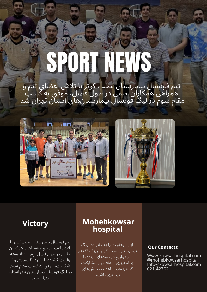 اخبار جشن پیروزی محب کوثر در رقابت های فوتسال تیم فوتسال بیمارستان محب کوثر با تلاش اعضای تیم و همراهی همکاران حامی در طول فصل موفق به کسب مقام سومخ در لیگ فوتسال بیمارستان های استان تهران شد. ۴ آذر ۱۴۰۴ ۰۸:۰۷ تعداد بازدید : ۲۰ نظرات بینندگان میانگین امتیاز کاربران: 0.0 (0 رای) 12345 امتیاز 12345 برای امتیاز باید عدد وارد کنید ایمیل صحیح نیست ایمیل نمایش داده شود. تعداد کاراکتر باقیمانده: 500 نظر خود را وارد کنید بازخوانی بازخوانی پس از انتشار این نظر، به من اطلاع داده شود. ارسال