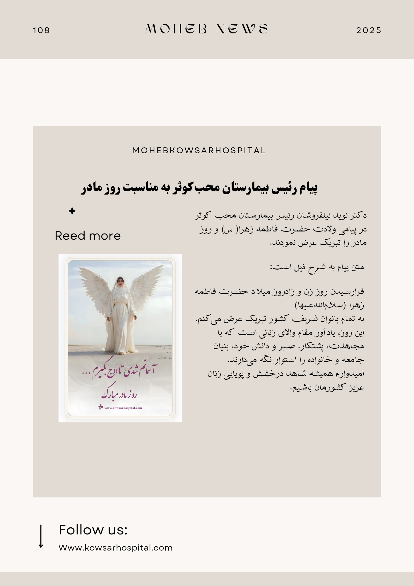 اخبار پیام ریاست بیمارستان محب کوثر به مناسبت روز مادر پشتکار،صبر و دانش،ویژگی زنان پیشرو ۱۹ آذر ۱۴۰۴ ۱۱:۴۱ تعداد بازدید : ۱۳ نظرات بینندگان میانگین امتیاز کاربران: 0.0 (0 رای) 12345 امتیاز 12345 برای امتیاز باید عدد وارد کنید ایمیل صحیح نیست ایمیل نمایش داده شود. تعداد کاراکتر باقیمانده: 500 نظر خود را وارد کنید بازخوانی بازخوانی پس از انتشار این نظر، به من اطلاع داده شود. ارسال